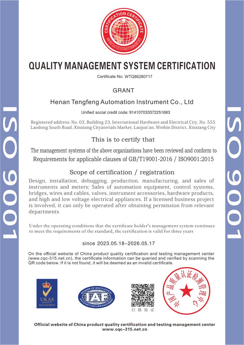 質(zhì)量管理體系認(rèn)證證書(shū)(英文)