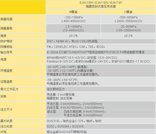 密封隔膜是用于防止過(guò)程介質(zhì)直接進(jìn)入差壓變送器的壓力傳感器組件中,它們是通過(guò)注滿流體的毛細(xì)管與變送器連接的。EJX118W、EJA118N和EJA118Y型隔膜密封式差壓變送器用于測(cè)量液體、氣體或蒸汽的流量以及液位、密度和壓力,然后將其轉(zhuǎn)變成4~20mA DC的電流信號(hào)輸出。EJA系列支持BRAIN、HART和FOUNDATION?現(xiàn)場(chǎng)總線或PROFIBUS PA通信協(xié)議。